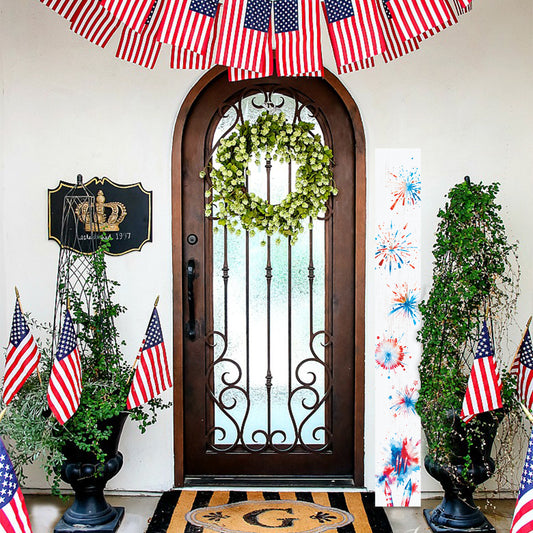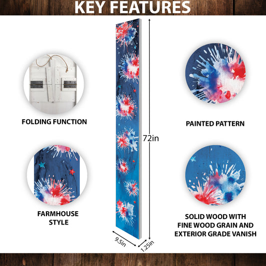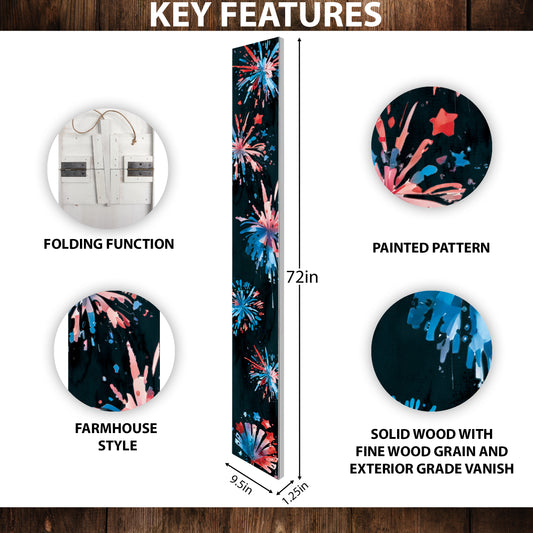 72in Firework Pattern Porch Sign | Patriotic Wooden Porch Decor | 4th of July Decor for Front Door | Independence Day Outdoor Decor