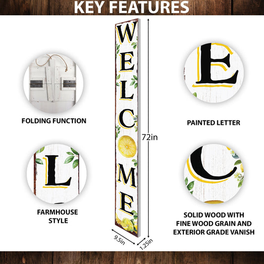 72in Fresh Lemon Summer Welcome Porch Sign | Rustic Wooden Decor | Outdoor Wall Art | Vibrant Farmhouse Patio Display