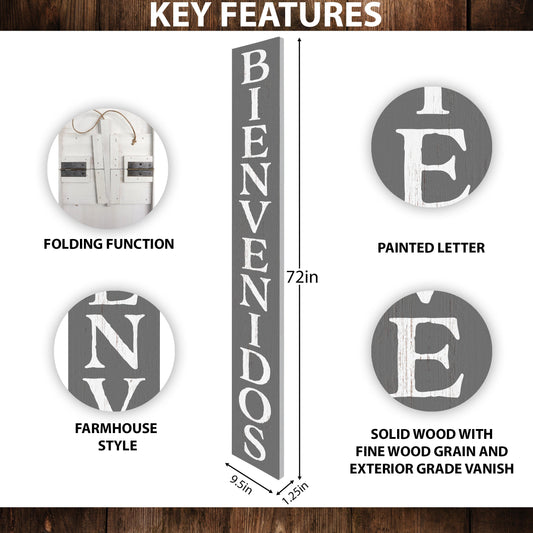 72in Gray Bienvenido Porch Sign - UV Protected, Sealed, Foldable, Portable - Perfect for Front Door and Entryway Decor