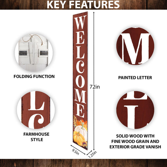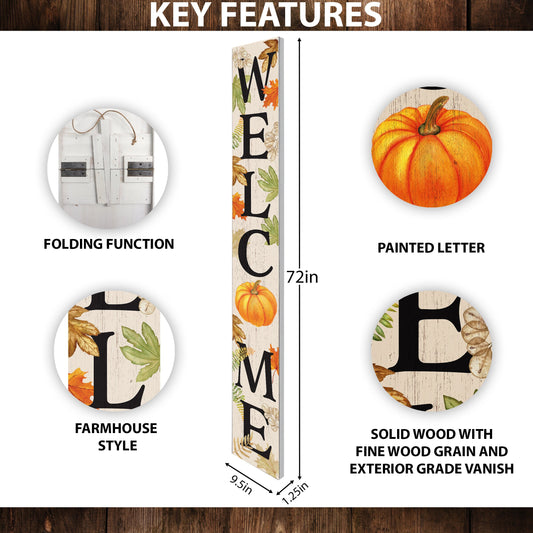 72in Fall Welcome Porch Sign - Front Porch Fall Welcome Sign with Vintage Autumn Decoration, Rustic Thanksgiving Decor for Outdoor
