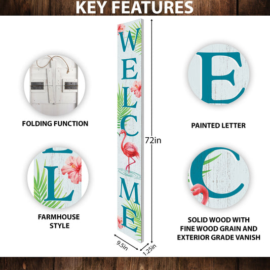 72in Flamingo Welcome Sign | Front Door Porch Sign | Coastal Summer Welcome Sign | Farmhouse Home Decor