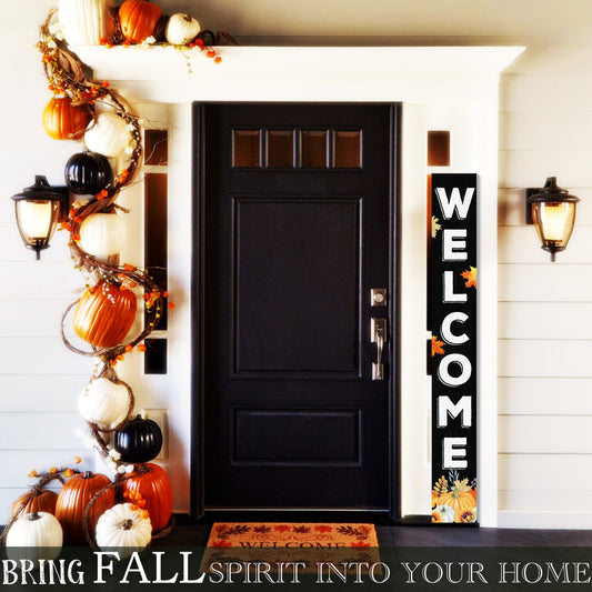 72in Fall Welcome Sign | Black Front Door Display | Perfect for Porch Decor | Ideal for Autumn Celebrations
