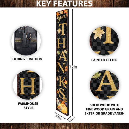 72in Give Thanks Fall Porch Sign - Front Porch Fall Welcome Sign with Vintage Autumn Decoration, Rustic Thanksgiving Decor for Outdoor