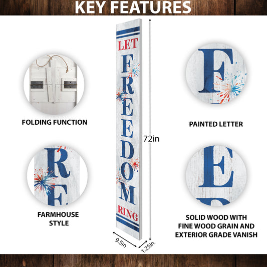 72in Let Freedom Ring Porch Sign | Patriotic Wooden Porch Decor | 4th of July Decor for Front Door | Independence Day Outdoor Decor