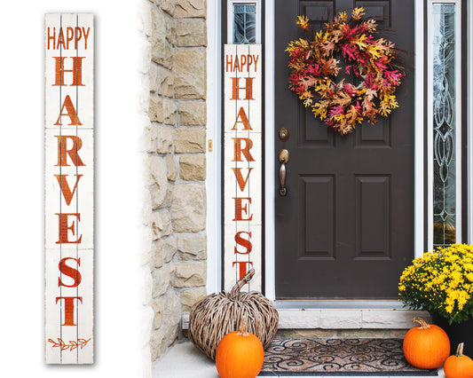 72in Outdoor Happy Harvest Rustic Craft Porch Sign for Front Door, 6ft Vertical Wooden Welcome Sign for Front Porch