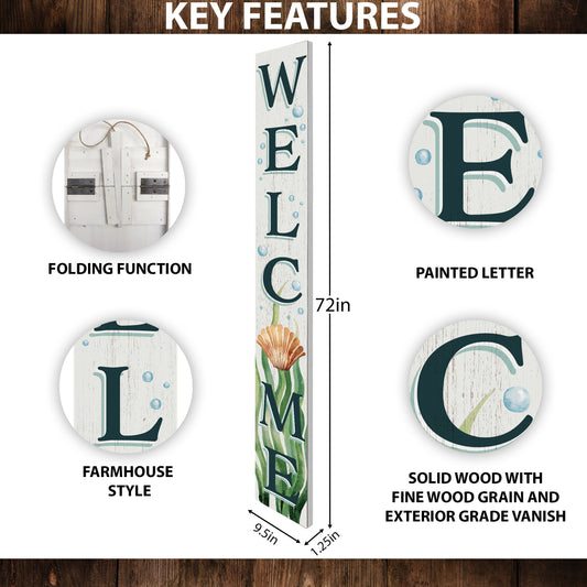 72in Outdoor Coastal "Welcome" Sign with Shell Pattern - Large Summer Front Door Porch Decor for Farmhouse Home Decorations