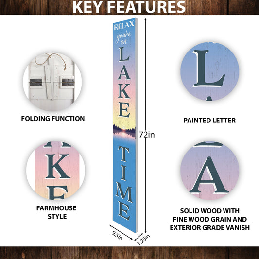 72IN Outdoor Sign Welcome to the Lake House Wooden Porch Sign Standing, Summer Porch Sign for Porch/Patio Decor