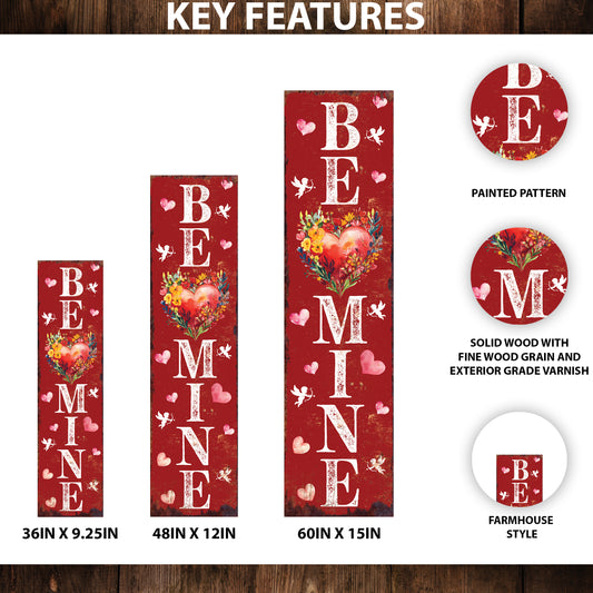Be Mine Valentine’s Day Porch Sign | Wooden Entryway Decor | UV Print | Front Porch Plaque | Romantic Home Decor | 3 Sizes