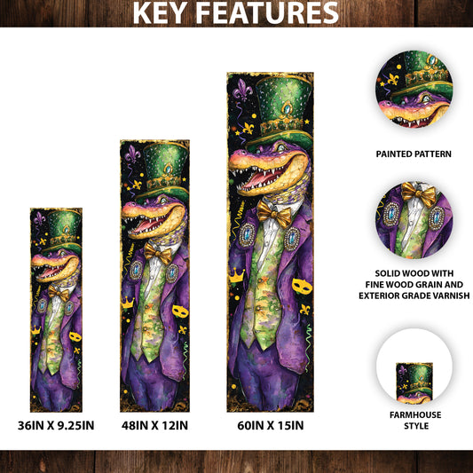 Alligator Mardi Gras Porch Sign | Wooden Entryway Decor | UV Print | Front Porch Plaque | Festive Mardi Gras Decor | 3 Sizes
