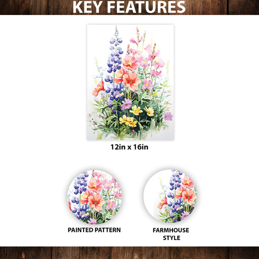 Alaskan Summer Wildflower Watercolor Art | Fireweed, Lupine, Arctic Poppy & Mountain Avens | Nature-Inspired Canvas Wall Decor | 12x16in