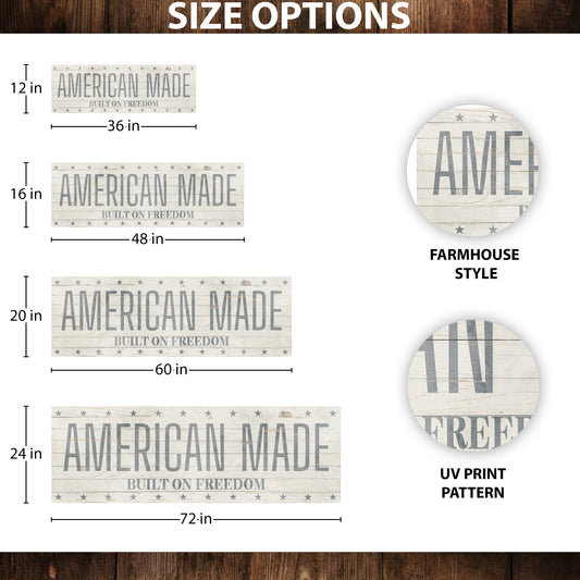 American Made Built on Freedom Wall Sign | Vintage Patriotic Farmhouse Decor | 4th of July Independence Day Wall Art