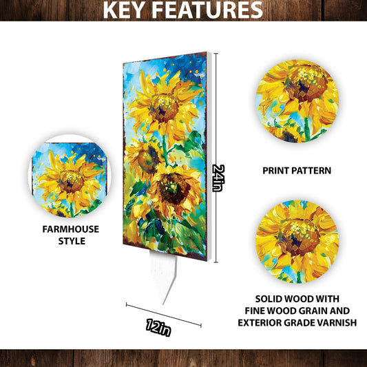 Beautiful 30in Summer Garden Stake | Oil Paint Style Sunflower Decor | Great for Outdoor Decor, Yard Art, and Garden Decorations