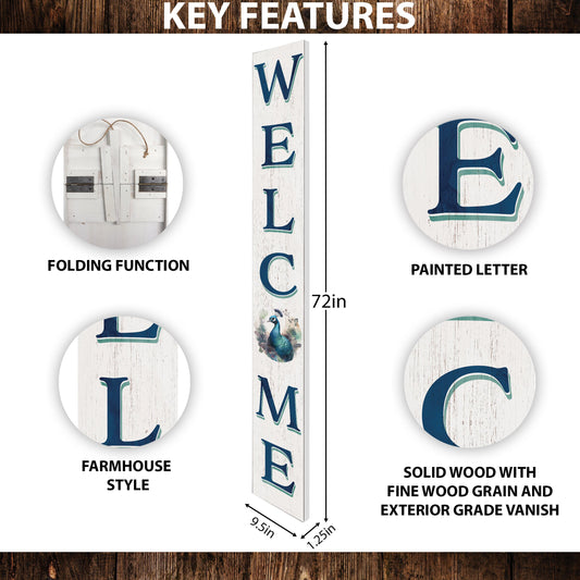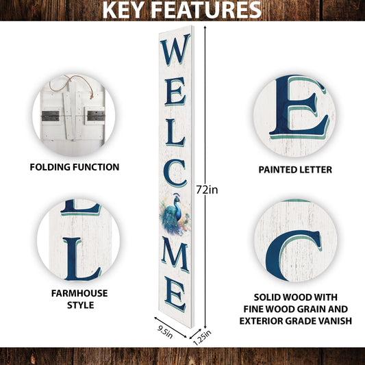 72in Wooden Welcome Porch Sign with Watercolor Peacock Pattern - Elegant Outdoor Decoration