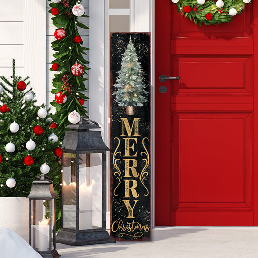 Black 4ft Merry Christmas Porch Sign - Rustic Farmhouse Outdoor Entryway Decor
