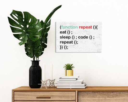 Celebrate Your Passion: 7.5in x 5in Wooden Wall Decor Sign - "Eat Sleep Code Repeat" - Inspiring & Fun