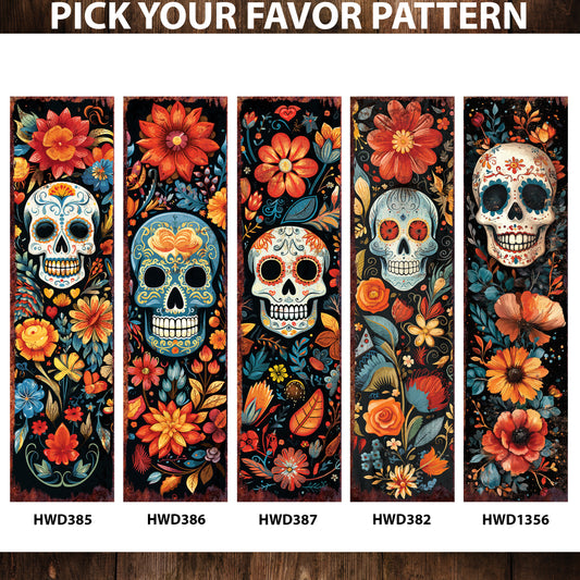 Día De Los Muertos Sugar Skull Porch Sign – Day of the Dead Front Porch Welcome Sign | Colorful Floral Sugar Skull Outdoor & Indoor Decoration