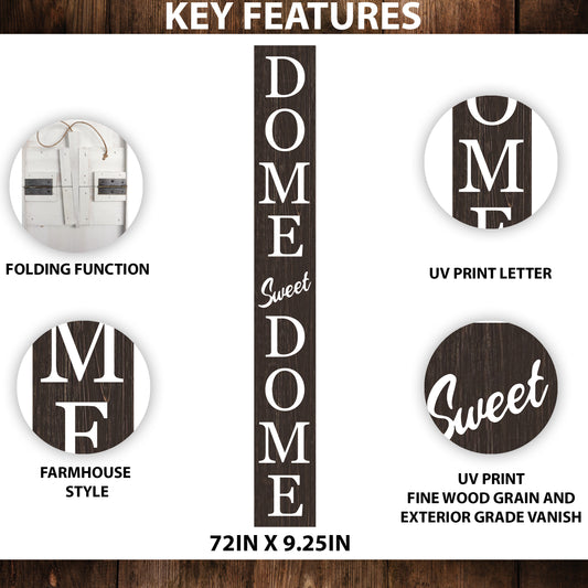 Dome Sweet Dome Porch Sign – 72in Vertical Wood Decor, UV Print Farmhouse Style Folding Entry Sign for Porch