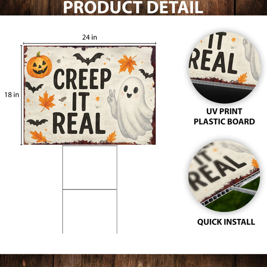 Creep It Real Halloween Garden Sign – Funny Ghost Yard Stake – UV Print Corrugated Plastic Outdoor Décor