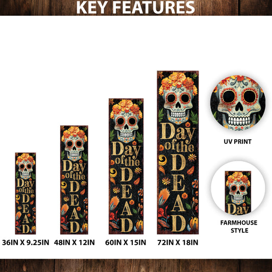 Day of the Dead Sugar Skull Porch Sign - Dia De Los Muertos Front Porch Sign, Rustic Modern Farmhouse Entryway Decor