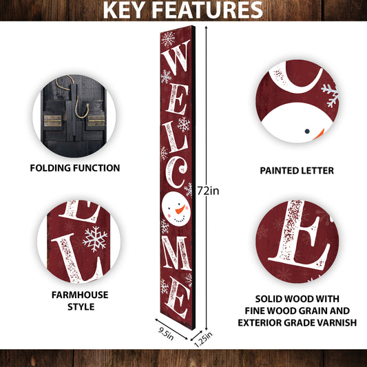 Christmas Snowman Welcome Porch Sign | Red Vertical Farmhouse Outdoor Decor