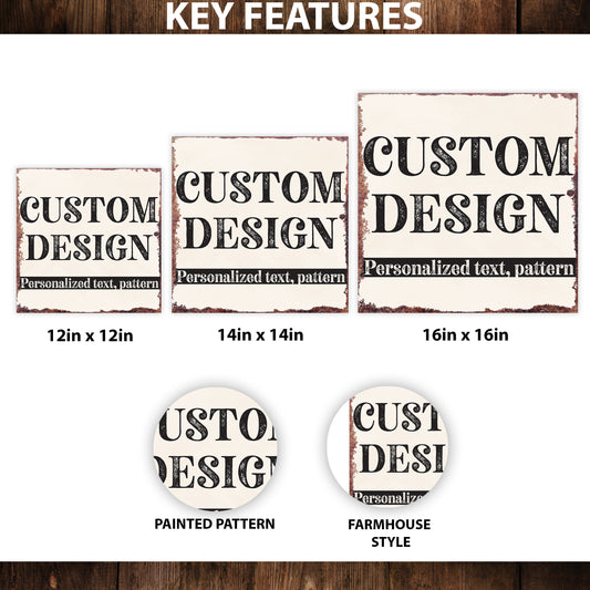 Custom Square Wall Sign – Personalized Farmhouse Decor, Painted Wood Style with Text or Pattern, 12–16in Rustic Wall Accent