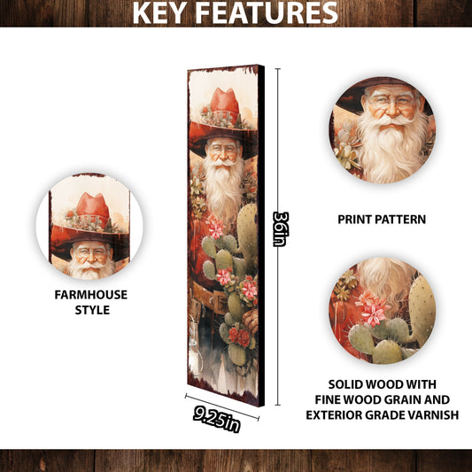 Cowboy Santa Christmas Porch Sign | Rustic Farmhouse Outdoor Welcome Decor