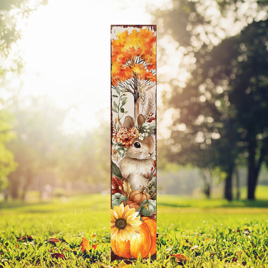 Fall Garden Stake – Rustic Bunny with Pumpkins & Sunflowers Outdoor Decoration | Autumn Yard, Porch, Patio Farmhouse Décor