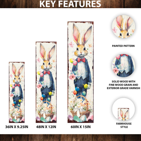 Easter Porch Sign Decor for Front Porch | Easter Outdoor Decor for Front Door | Watercolor Bunny Design | 3 Sizes