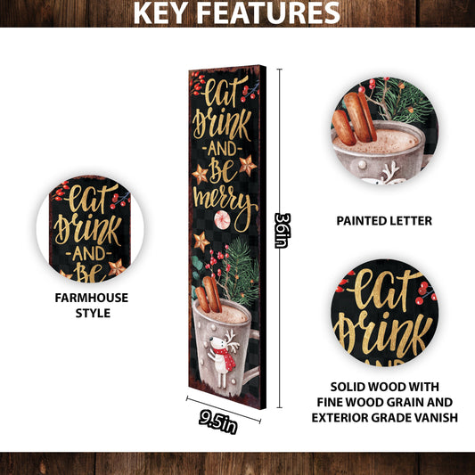 Eat Drink & Be Merry Christmas Porch Sign | Farmhouse Welcome Holiday Decor Gift