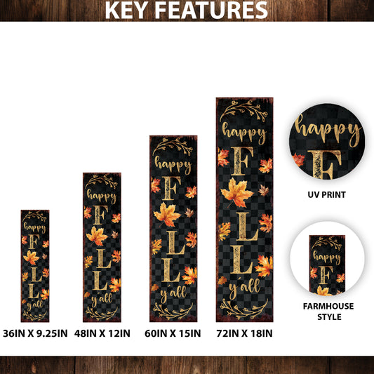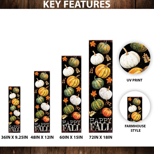 Happy Fall Vertical Porch Sign – Rustic Autumn Outdoor Welcome Decor
