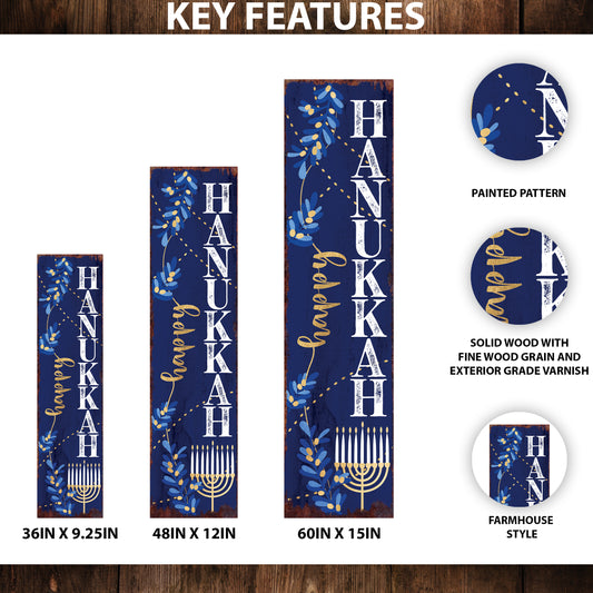 Happy Hanukkah Porch Sign | Front Porch Welcome Sign | Modern Farmhouse Decor | Rustic Outdoor Decoration