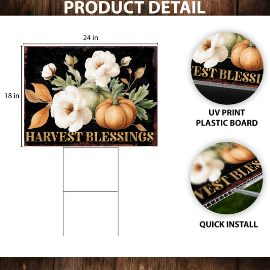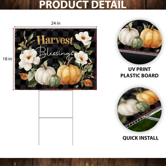 Harvest Blessings Yard Sign – 24x18in Outdoor Fall Garden Stake, UV Printed Floral Pumpkin Decor, Corrugated Plastic Board