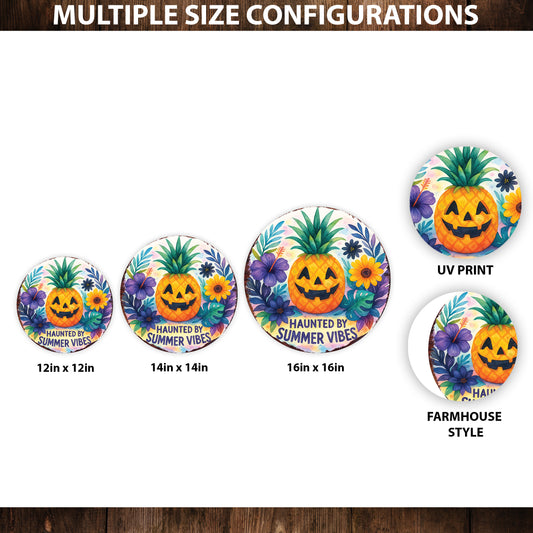 Haunted by Summer Vibes Summerween Door Hanger – Tropical Pumpkin Pineapple Sign – UV Print Décor for Door, Porch, or Patio