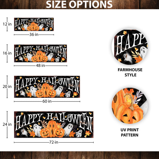 Happy Halloween Wall Art – Rustic Pumpkin & Ghost Farmhouse Sign – Seasonal Halloween Decoration for Living Room, Entryway, Porch, or Party