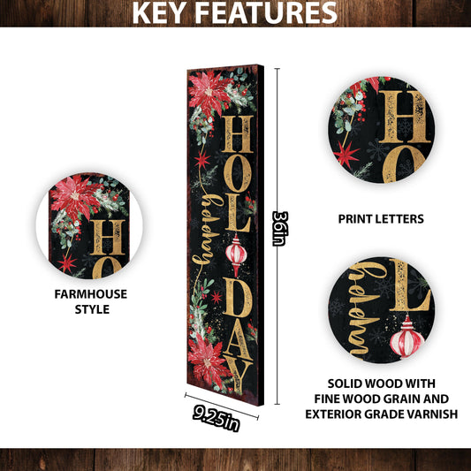 Happy Holidays Porch Sign | Rustic Farmhouse Christmas Vertical Outdoor Decor
