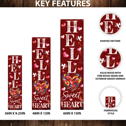 Hello Sweet Heart Valentine’s Day Porch Sign | Wooden Entryway Decor | UV Print | Front Porch Plaque | Romantic Home Decor | 3 Sizes