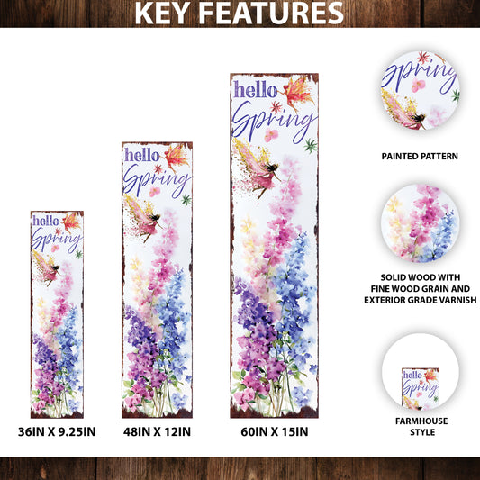 Hello Spring Fairy Fireweed Decor Porch Sign | Entryway Decor | UV Print | Front Porch Plaque | Seasonal Home Decor | 3 Sizes