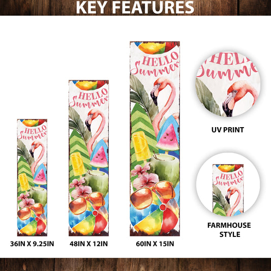 Hello Summer Porch Sign | Flamingo & Beach Ball Outdoor Decor | Multi Sizes | Perfect for Porch, Yard, Garden, or Front Door