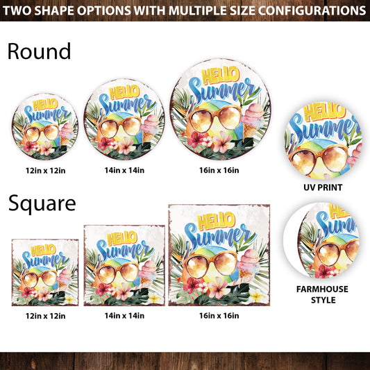 Hello Summer Door Hanger | Ice Cream & Beach Ball Design | Multi Sizes | Perfect for Front Door | Indoor Wall Decor