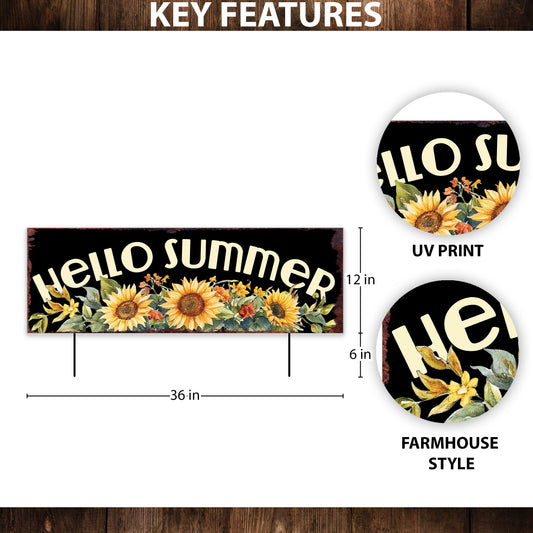 Hello Summer Wildflower Garden Stake | 36in Floral Yard Sign | UV Print Outdoor Decor | Rustic Farmhouse Summer Garden Accent