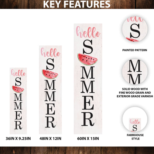 Hello Summer Wooden Porch Sign with Watermelon Pattern | Seasonal Welcome Sign | Front Porch Home Decor | 3 Sizes