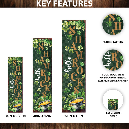 Hello Shamrocks St. Patrick’s Day Porch Sign Entryway Decor | UV Print | Front Porch Plaque | Seasonal Home Decor | 3 Sizes