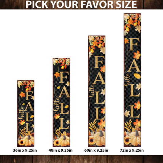 Hello Fall Porch Sign – Vertical Autumn Welcome Board with UV Print, Rustic Wood Fall Decor, 36-72in Outdoor Porch Display