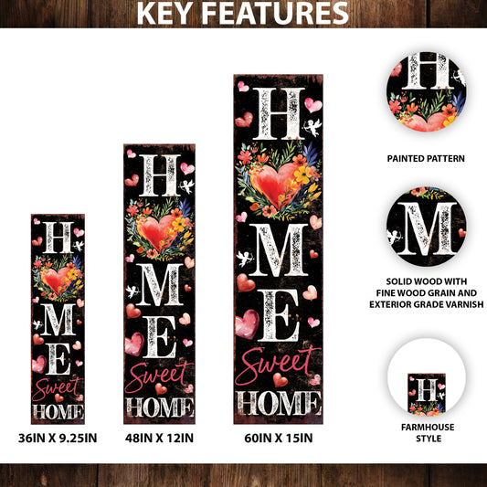 Home Sweet Home Valentine’s Day Porch Sign | Wooden Entryway Decor | UV Print | Front Porch Plaque | 3 Sizes