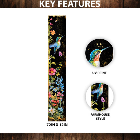 Hummingbird Porch Sign 72in x 12in | UV Printed Floral Outdoor Sign | Farmhouse Style Summer Decor for Porch, Patio, Yard, or Entryway