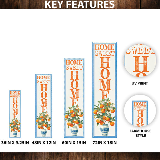 Home Sweet Home Porch Sign – Summer Orange Bloom Design, UV Printed, 36–72in Vertical Farmhouse Decor for Patio or Entryway