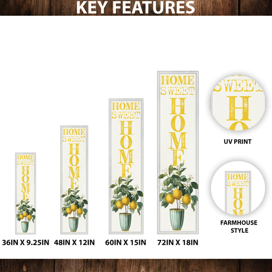 Home Sweet Home Porch Sign – Summer Lemon Design, UV Printed, 36–72in Vertical Rustic Farmhouse Decor for Porch or Entryway
