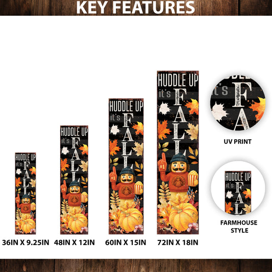 Huddle Up It’s Fall Porch Sign – Football Nutcracker Fan Decor, 36–72in UV Print Fall Outdoor Decoration for Porch, Patio or Entryway