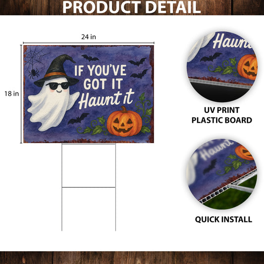 If You’ve Got It Haunt It Halloween Garden Sign – Funny Ghost Yard Stake – UV Print Corrugated Plastic Outdoor Décor