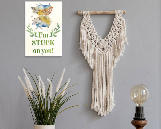 I'm Stuck On You with Hedgehogs - 7.5in x 5in Wooden Wall Decor Sign - Cute & Humorous Sign for Home and Office, Great Gift Idea